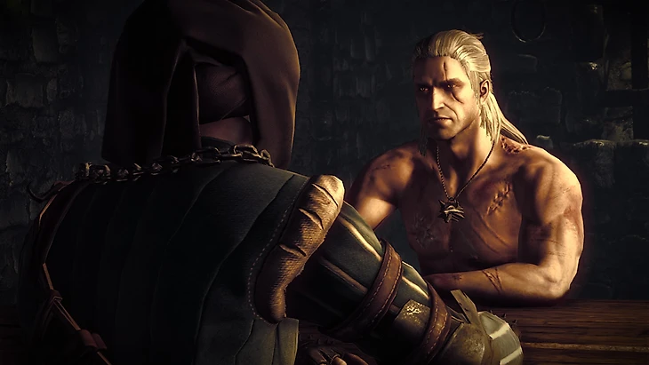 Во второй части он постарел, но в модели прибавилось полигонов. В одной из сцен Геральт появляется в полуобнаженном виде; мы видим многочисленные шрамы и рельефные мускулы.