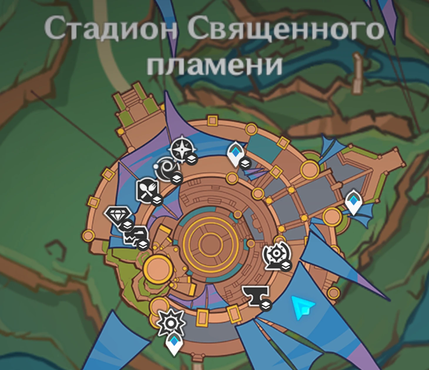 На стадионе Священного пламени, верхний слой. От крайнего телепорта у входа на стадион бегите направо к бассейну.