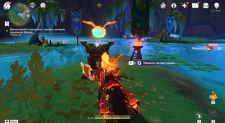 Примите управление Мавуикой и зажмите Элементальный навык, чтобы сесть на байк. Активируйте испытание.