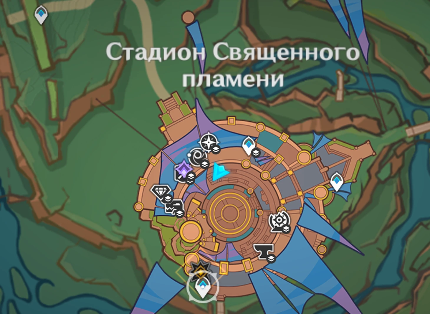 Следующий пункт назначения – юго-запад от Стадиона священного пламени. Быстрее всего добраться от ближайшего телепорта.
