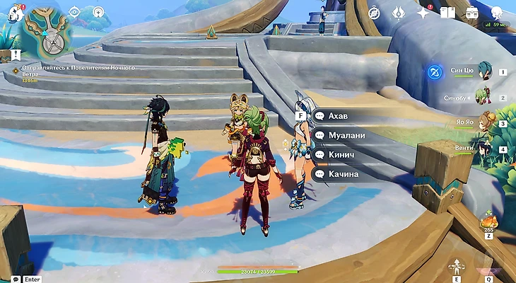 Там же вы встретите компанию из Муалани, Качины и Кинича. Просмотрите кат-сцену, где Муалани спасает тонущих граждан, и отправляйтесь в Племя повелителей ночного ветра. Перед этим можете поговорить с товарищами.