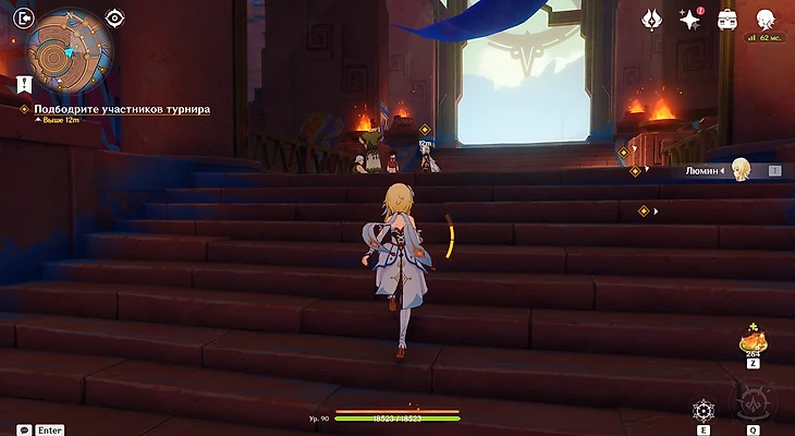 Телепортируйтесь на Стадион священного пламени. Первая кат-сцена стартует в комнате путешественника: прибывшая Ситлали прервет отдых главного героя и сообщит, что случилась беда.