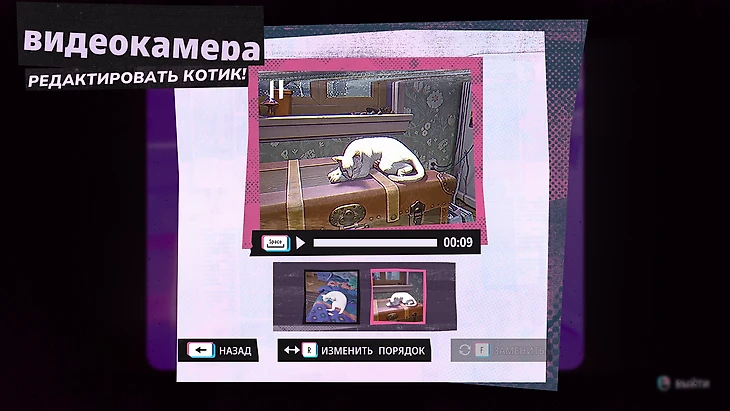 В отдельном меню из собранных кадров можно смонтировать мини-фильм. Все они рассортированы по тематикам, а результат Суонн всегда комментирует. Некоторые документалки мелькают в сюжете, хотя и не влияют на него.