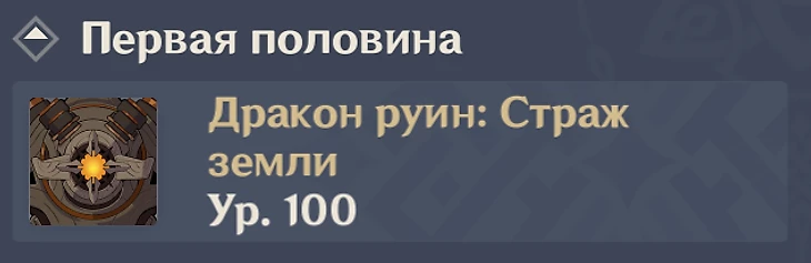 Вас ждут Руинные молотильщики и Страж Руин. Бафф на Крио атаки подсказывает взять Аяку, но в целом это не особо критично, потому что сопротивление у противников повышено только к физическому урону. Также не забывайте целиться в их слабые места (глаз), чтобы застаггерить.