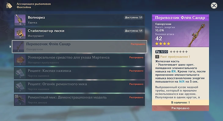Меч «Перевозчик Флев Сандр» в Genshin Impact – как получить и кому подходит?