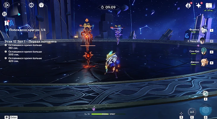 Для 9 звезд нужно закрыть этаж за 420 секунд. Команды можно менять для каждого зала – после успеха возвращайтесь в лобби, лучший результат сохранится.