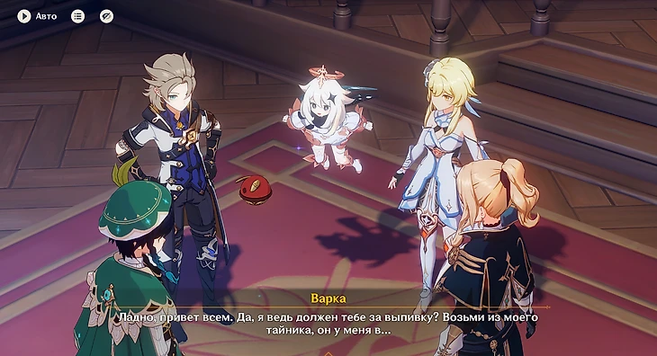 Путешественник/ца и Паймон говорят о Варке в формате истории: