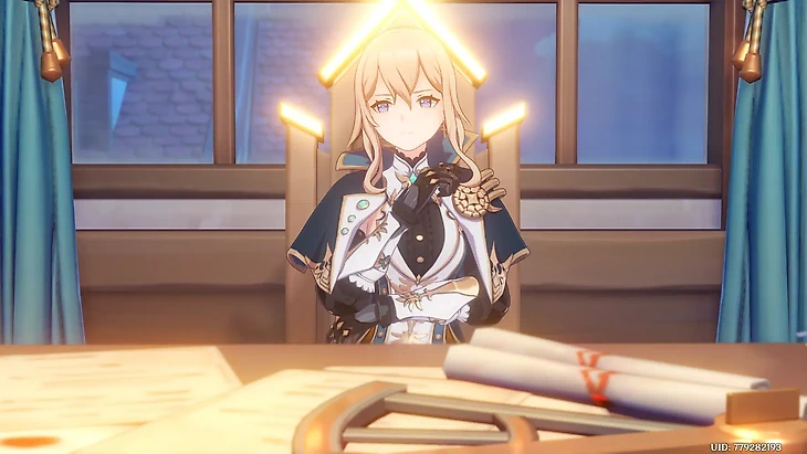 «Я хотела отправиться с его отрядом и исполнять обязанности горничной в путешествии, но Магистр ордена сказал, что ему будет спокойнее, если я буду прикрывать тыл в Мондштадте... Я очень рада, что он меня так ценит! Правда, потом оказалось, что он много кому это сказал, но меня-то он ценит не меньше!».