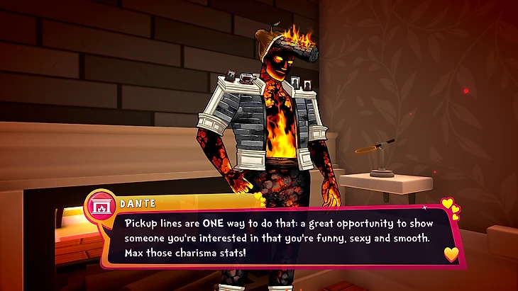 Вот Данте, открытый и дружелюбный камин, который напомнил мне Брэнда из «Лиги Легенд». Только я к нему подошла, он сразу: «О, ты меня разожгла!» – а потом невинно хлопает глазками: мол, ты все не так поняла.
