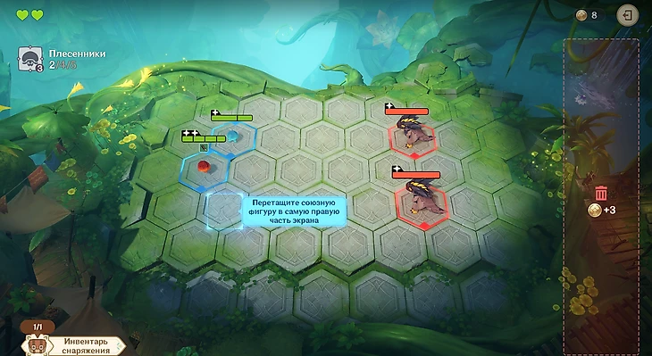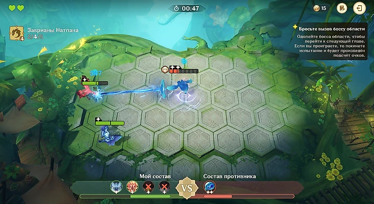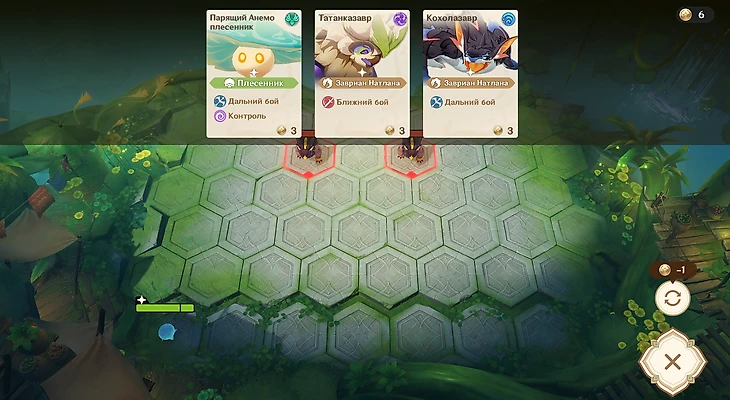 Смысл игры заключается в том, чтобы правильно расставить фигуры и скомбинировать элементы. Для этого придется применять разные подходы. Например, Пиро плесенники хорошо справляются с врагами, уязвимыми к огню. Если объединить их с другими типами, можно вызывать элементальные реакции, вроде Перегрузки или Заморозки. Соратники одного вида сражаются бок о бок эффективнее.