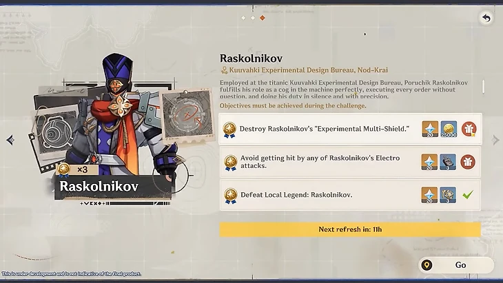 ● Раскольников – имеет три щита, уязвимых к Электро + Гидро. При их разрушении падает его сопротивление к Электро.