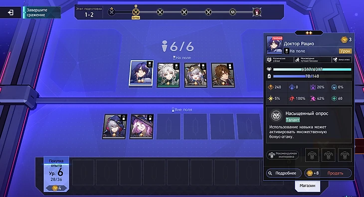 ● Вне поля – остальные персонажи, применяющие пассивные умения. Они лечат, накладывают баффы, дают огневую поддержку.