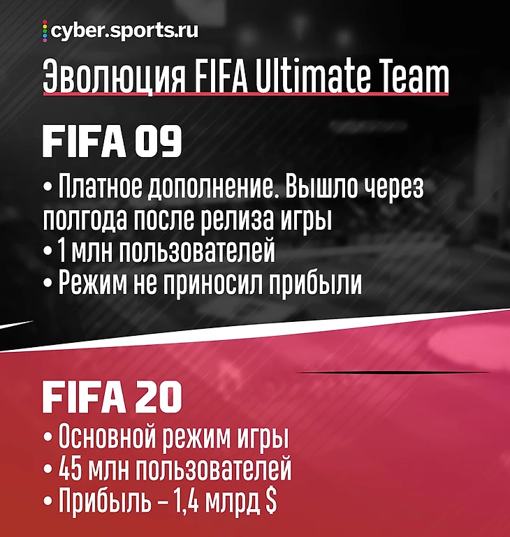 Босс EA Sports оказался прав: за первые пять лет число пользователей Ultimate Team выросло с 1 млн до 21 млн. В 2019 году Electronic Arts заработала 4,95 млрд долларов, где 28% (почти 1,4 млрд долларов) – доходы от FUT. Для сравнения, в 2017 году режим приносил 16% дохода, при этом основная версия FIFA принесла издателю только 14% выручки.
