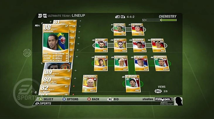 Уже тогда Ultimate Team мало чем отличался от современной версии: игроки открывали паки с карточками (тогда они больше напоминали стикеры из альбомов Panini), собирали составы и играли между собой в онлайне. Рынок трансферов, карточки стадионов, форм и химия состава – все это было в первой версии.
