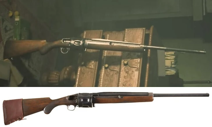 Первое оружие, что вы встречаете в трейлере – полуавтоматическое ружье Becker-Flinte. Производилось оно в 20-х годах 20 века, им вооружали полицию и продавали охотникам.