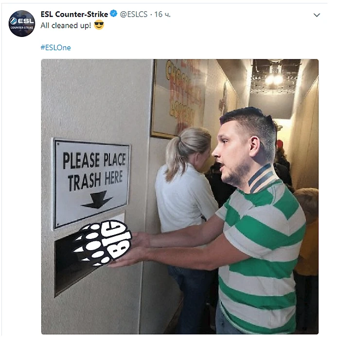 Мем с Данилом «Zeus» Тисленко в «Twitter» ESL Counter Strike после финала ESL One Cologne 2018, где команда «Natus Vincere» победила «BIG» со счетом 3:1.