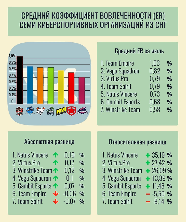 Инфографика среднего значения ER семи киберспортивных организаций из СНГ