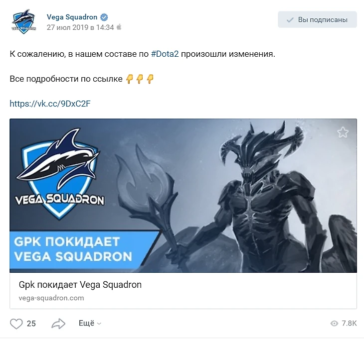 По традиции подвергаться анализу будут официальные паблики ВКонтакте семи крупных киберспортивных организаций: Natus Vincere, Virtus.pro, Winstrike Team, Gambit Esports, Team Empire, Team Spirit и Vega Squadron. Из «большой семерки» только Virtus.Pro миновали тернистый путь квалификаций из-за получения прямого инвайта на участие в The International. По итогам квалификаций, заветный слот в Шанхай получили ребята из Natus Vincere. Как же повлияла спортивная составляющая на социальные сети?