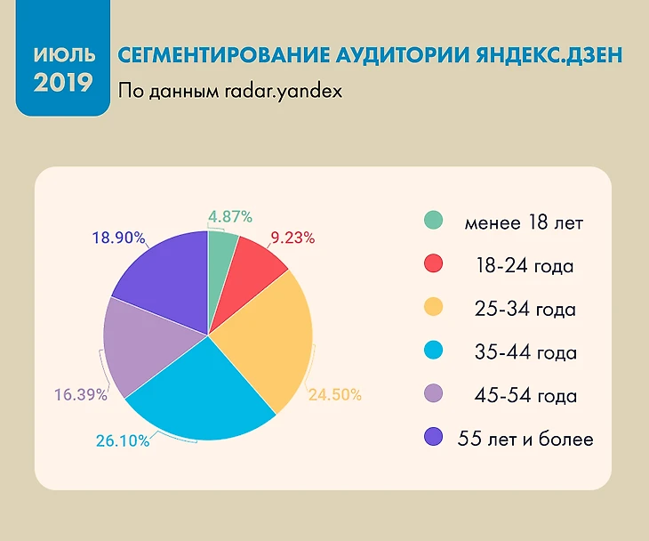 Сегментирование аудитории «Яндекс.Дзен» в июле 2019 года