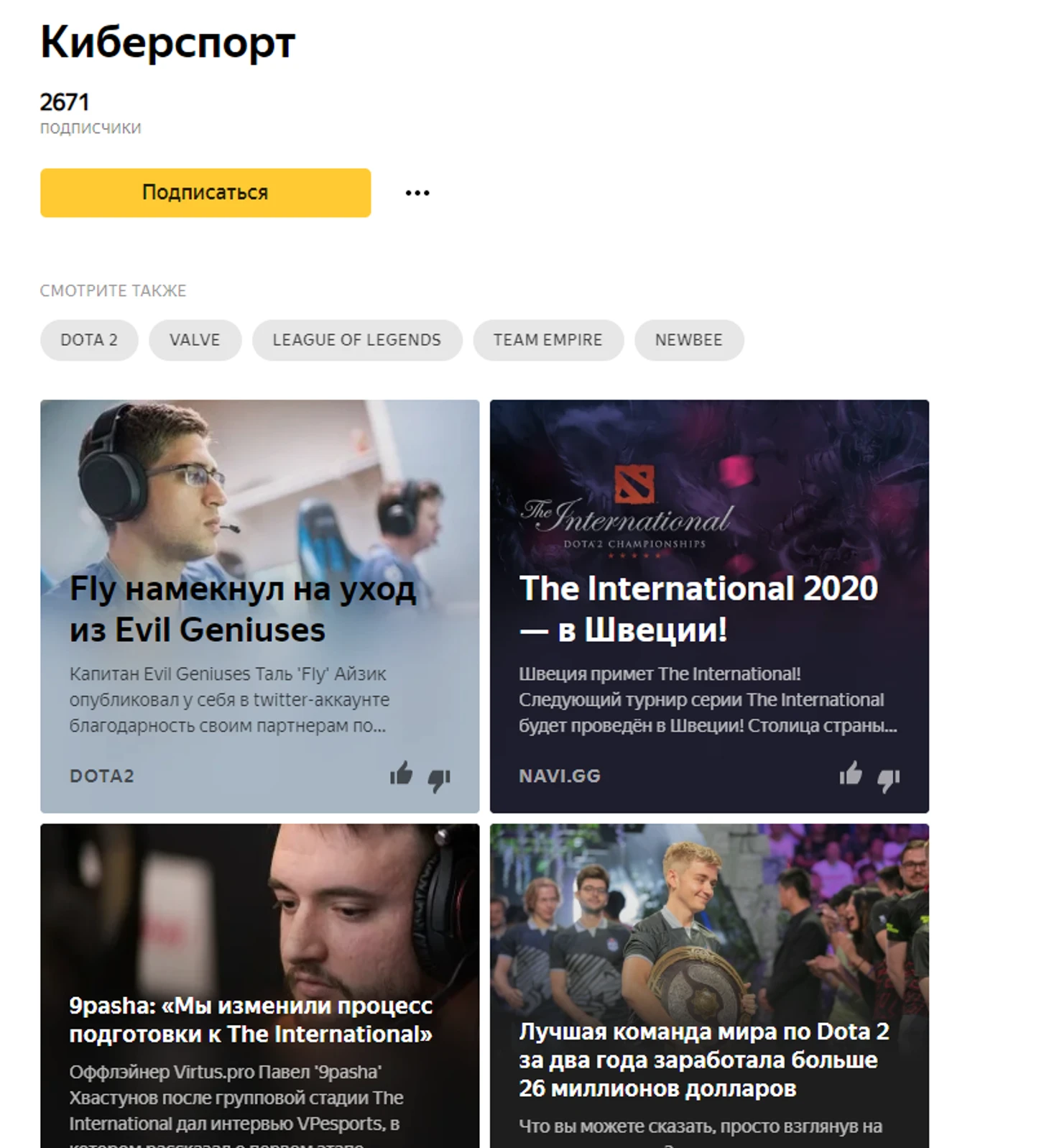 Киберспортивные новости на просторах «Яндекс.Дзен»
