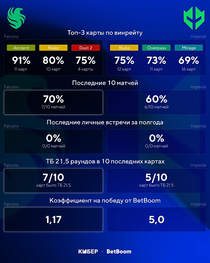 Falcons вернулись после неожиданного поражения в первом матче. Они легко разделались с Passion UA. Вероятно, Imperial тоже не доставить особых проблем.
