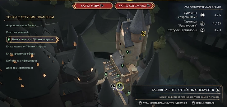 После разговора с Софронией Франклин переместитесь в точку с летучим пламенем «Башня защиты от темных искусств» и спуститесь по лестнице.