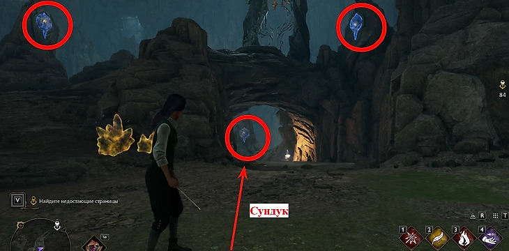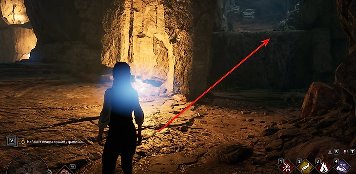 В пещере на вас будут периодически нападать пауки, как с ними справляться – вы уже знаете. Практически сразу вы окажетесь перед запертой дверью. Чтобы ее открыть, атакуйте руны на стене «основным заклинанием» – ЛКМ/R2/RT (ПК/PlayStation/Xbox).