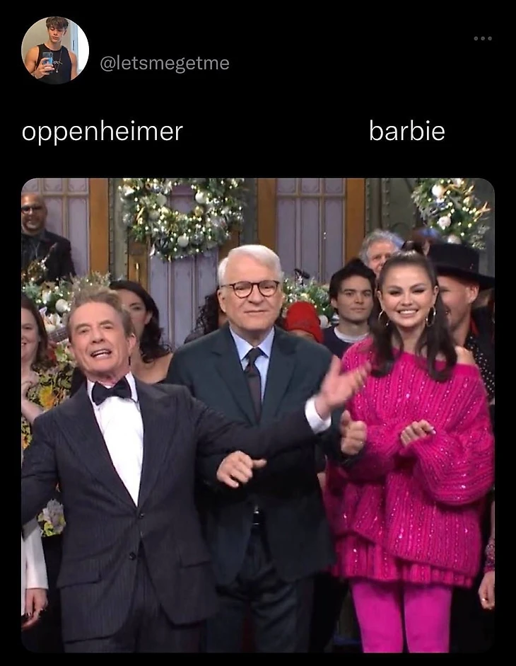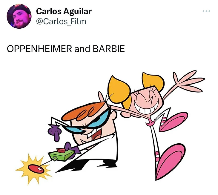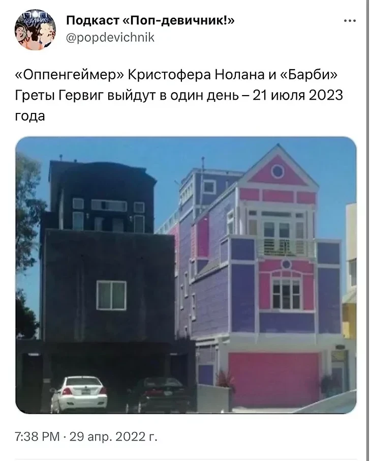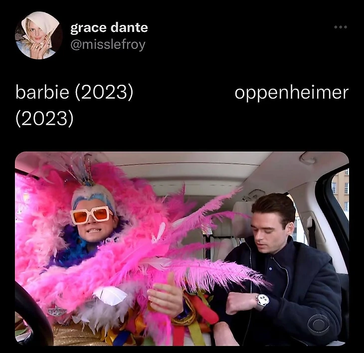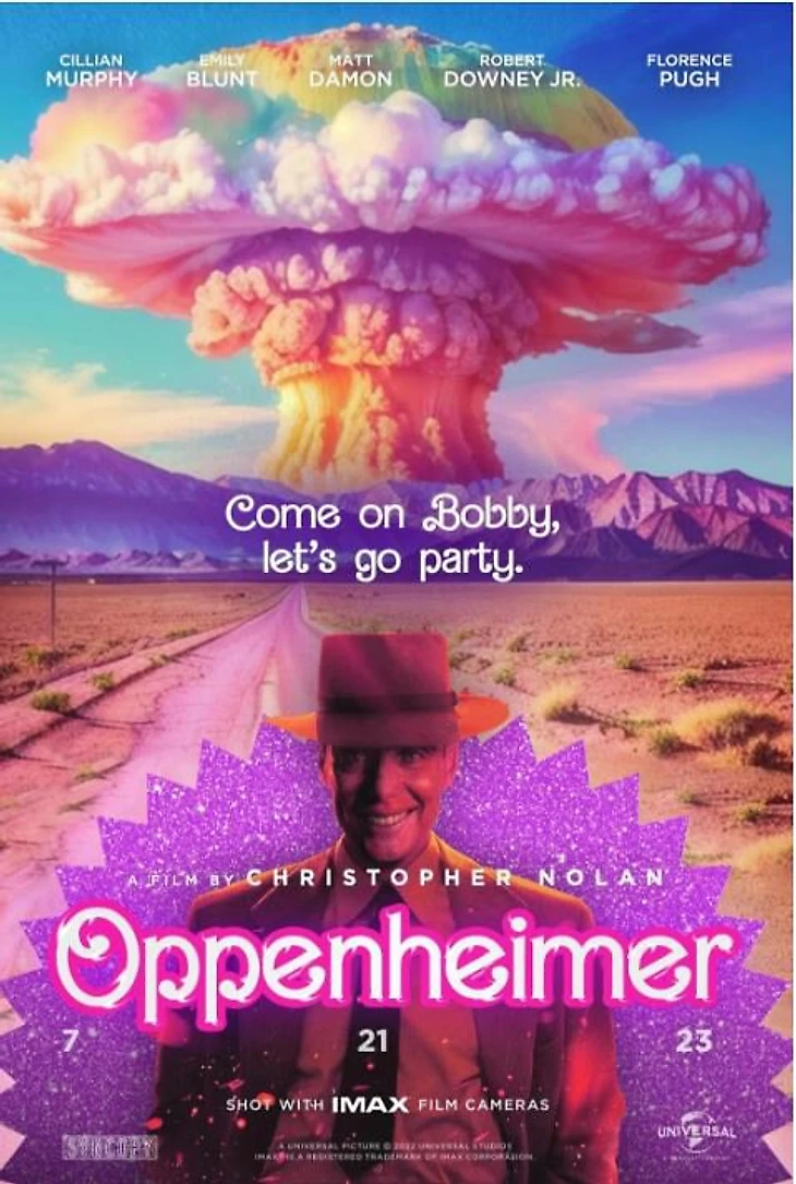 Но довольно быстро стало понятно, что «Оппенгеймер» и «Барби» настолько разные, что их гораздо смешнее соединять, чем сравнивать.