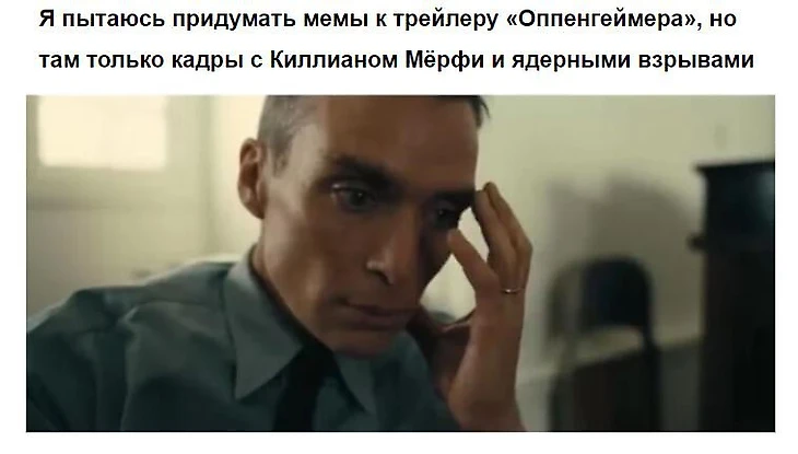 Киллиан Мерфи (сыграл Роберта Оппенгеймера) – не так популярен, но также часто дает поводы для мемов.