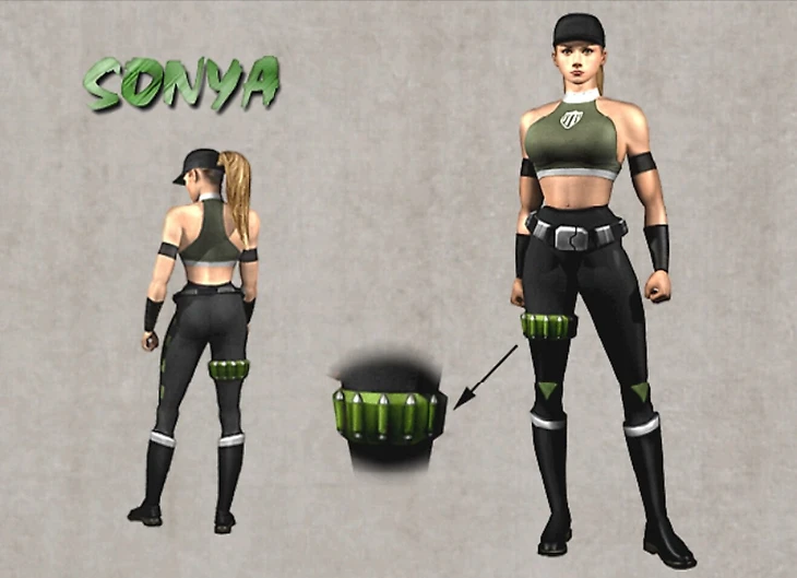 Единственным исключением стала вышедшая в 2005 году Mortal Kombat: Shaolin Monks – еще один спин-офф в жанре action-adventure, который был вольным пересказом событий МК 2. Соня в нем появлялась эпизодически и была своеобразным переосмыслением классического образа под актуальный милитари-дизайн персонажа.