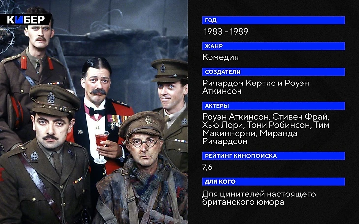 Совместив пародийный английский юмор «Монти Пайтона» и их же любовь к истории с форматом ситкома, Роуэн Аткинсон и Ричард Кертис («Реальная любовь») создали, перефразируя классика, «не шоу об истории Англии; шоу и есть Англия».