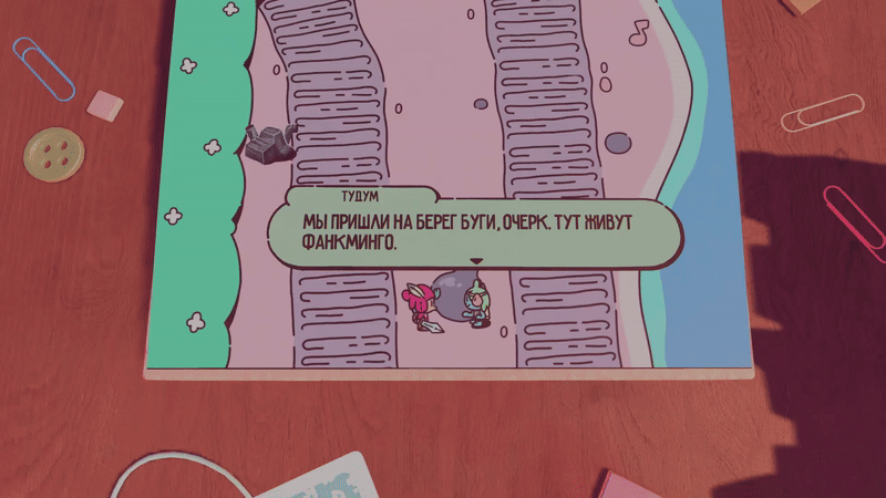 По отдельности эти элементы кажутся незаметными, но вместе создают ту самую атмосферу веселого приключения. The Plucky Squire генерирует веселые, милые и умилительные моменты, а герои наделены харизмой и колоритом. Маг Длиннобород любит рэп и вечеринки, называет героев «чуваками» и путешествует со своей маленькой версией – Микробородом. Злодей Бурчун создает тоталитарное государство в стиле «1984», а главный город Волшебии, Арт, населяют камео знаменитых художников от Уорхола до Мунка.