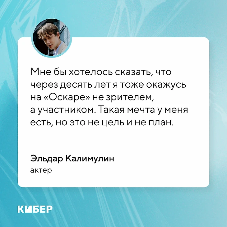 Мне бы хотелось сказать, что через десять лет я тоже окажусь на «Оскаре» не зрителем, а участником. Это было бы классно, и такая мечта у меня есть. Но это не цель и не план. Иногда я раз в девять месяцев думаю: «Было бы здорово». Классно, что у Юрки с Марком получилось. Было бы классно, если бы и у меня.