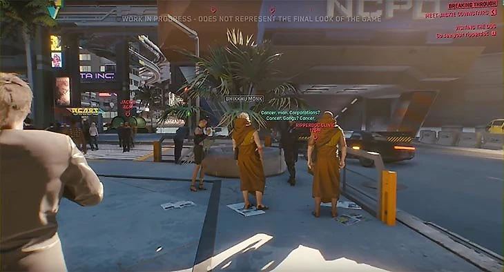 • В Cyberpunk 2077 фантастическая симуляция жизни. Горожане ругаются с продавцами, едят в кафешках, делают селфи, навязывают герою товары. Другой популярный проект с крутой симуляцией – GTA V (не говорите, что не слышали) – на фоне такого выглядит бледно.