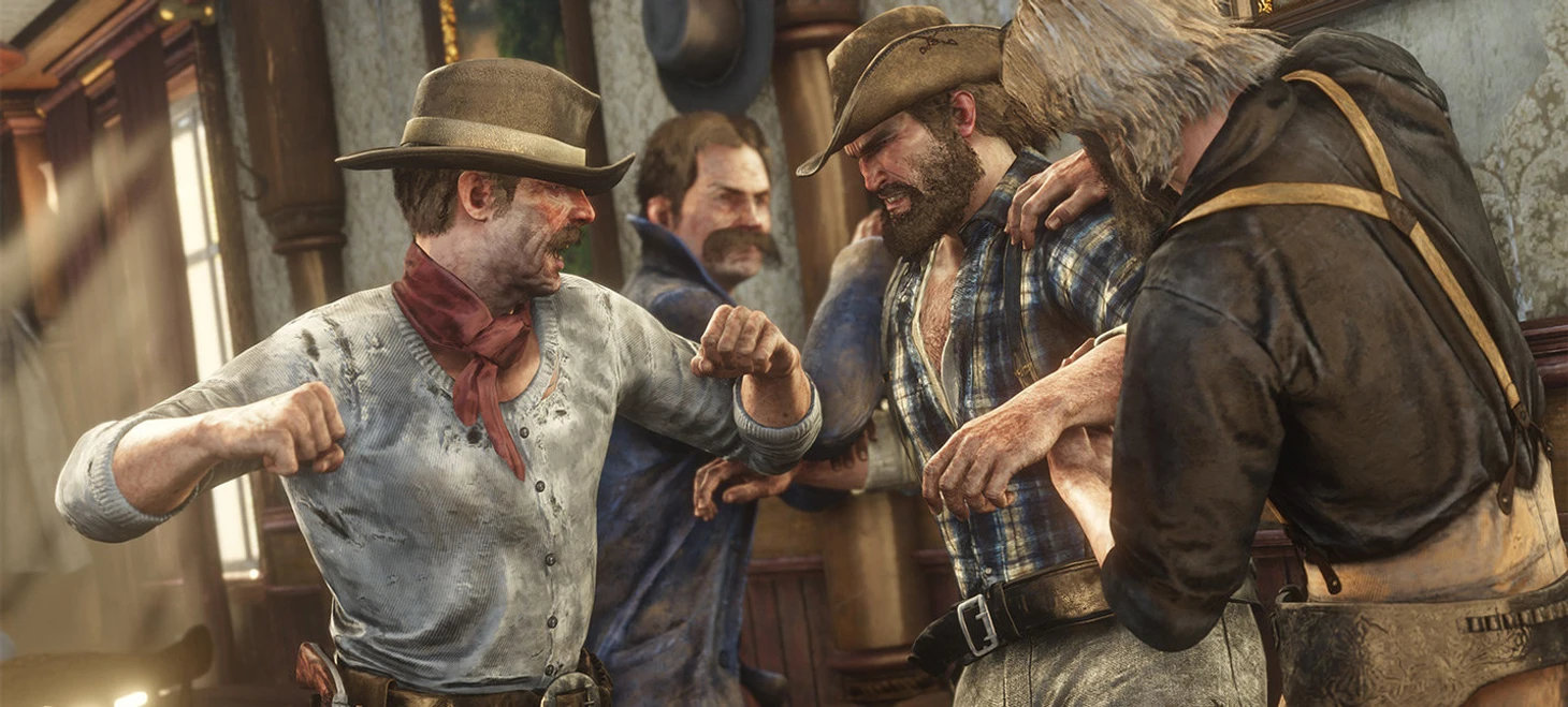 Перестрелки вызывали наибольшие сомнения: давайте признаем, в последнем проекте Rockstar GTA V они были предельно ватными. Такой же стрельба выглядела в трейлерах RDR2. Кайф от качественно сделанной стрельбы кроется в микромоментах: отдаче, звуке выстрела, корчащихся от попадания противниках. В общем, в хорошем шутере ты кайфуешь от каждого выстрела, в плохом – будто стреляешь пластмассовыми пульками в вату.