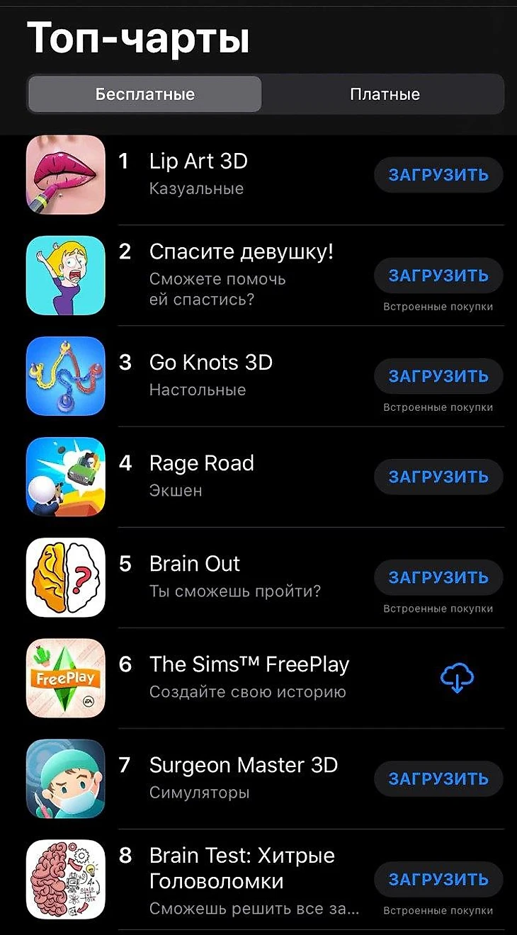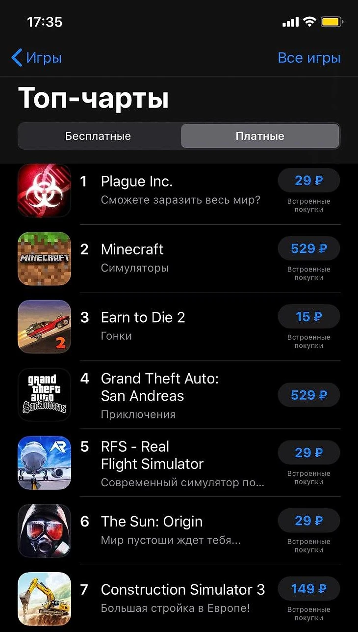 Актуальный чарт топовых бесплатных и платных игр. Есть еще прекрасный Apple Arcade!