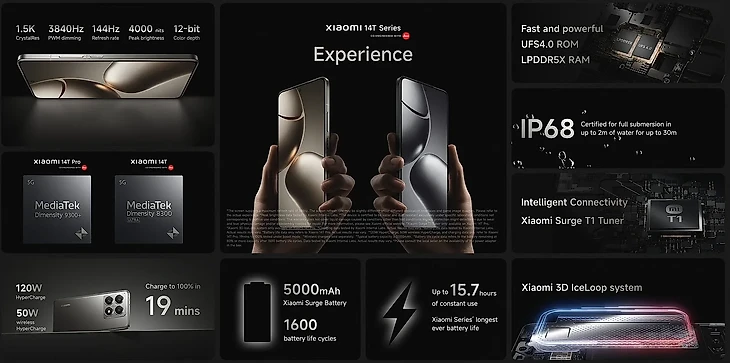 Xiaomi 14T Pro оснащен мощным чипом MediaTek Dimensity 9300+, тогда как Xiaomi 14T – 8300-Ultra. Оба смартфона имеют модификации с 12/16 ГБ ОЗУ и от 256 ГБ встроенной памяти. На задней панели расположены три камеры: основная на 50 Мп с 1/1.31-дюймовым сенсором Light Fusion 900 у Pro и Sony IMX-906 у базовой, телевик на 50 Мп и сверхширокая на 12 Мп. Разрешение фронталки – 32 Мп.