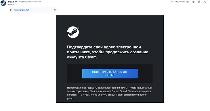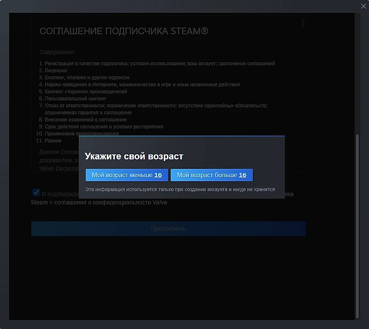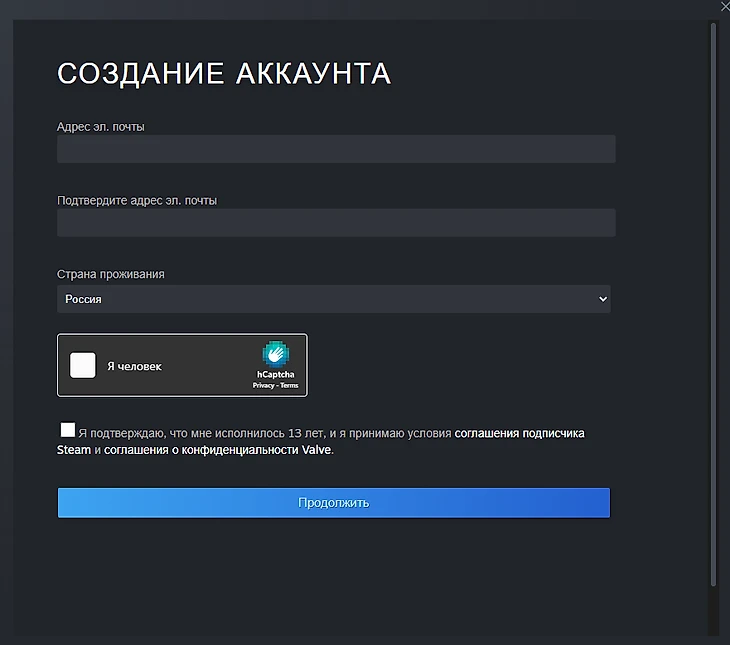 Введите адрес электронной почты, пройдите капчу и подтвердите соглашение подписчика Steam.