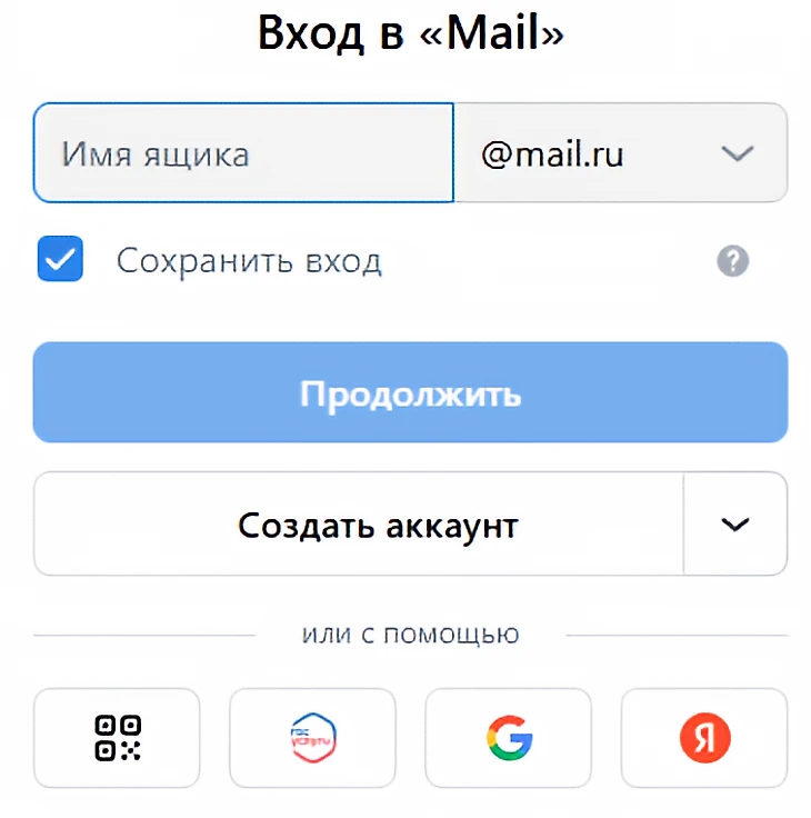 Например для почты Mail доступны вход через Госуслуги, Google, Яндекс и VK.