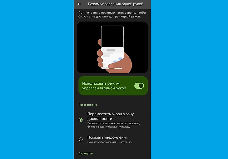 • Найдите пункт «Режим управления одной рукой», переключите ползунок.