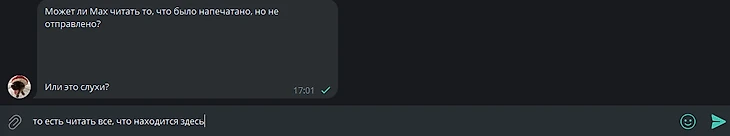 Да, Max может записывать не только отправленные сообщения, но и те, которые вы набрали и потом стерли.