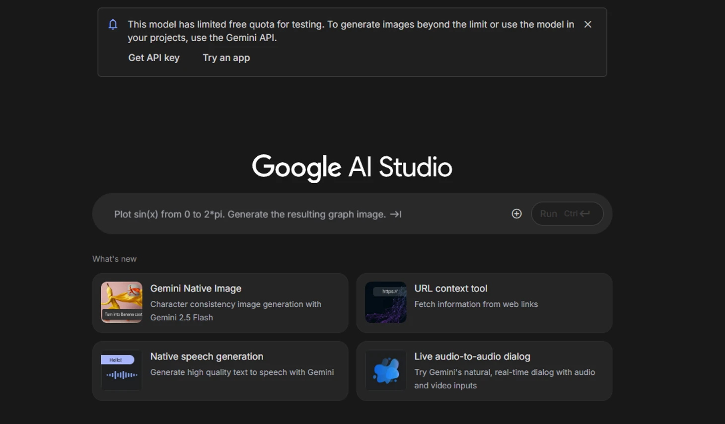 • Перейдите на страницу Google AI Studio и приступайте к работе.