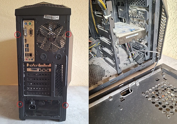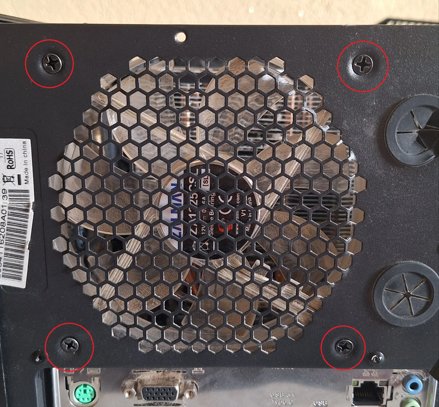 Снимаем блок питания. Он крепится сзади компьютера на 3-4 болта, просто открутите их, проверьте, не подключен ли он к другим комплектующим (например, жесткому диску. Если подключен – отключите), и достаньте его из корпуса.