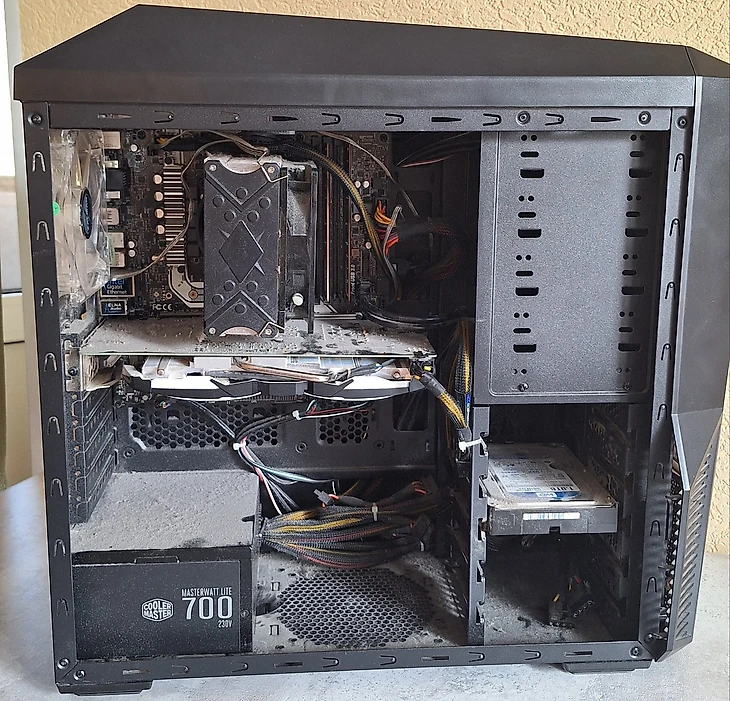 Ко мне в руки попал ПК, который не открывали, не обслуживали и даже не протирали от пыли с самой покупки – а куплен он был около 10 лет назад. Термопаста превратилась в камень, радиаторы были забиты пылью так, что их можно было погладить, как котенка. Я полностью его очистил: разобрал до винтика, убрал многолетние залежи пыли, поменял все термоинтерфейсы и даже протер окисления на контактах оперативной памяти. Теперь он выглядит как новый.