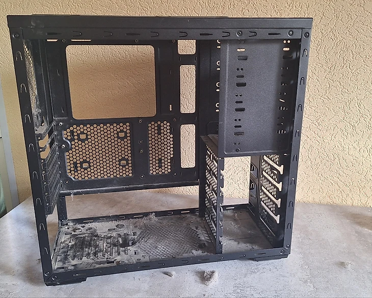 Теперь у нас остался только голый корпус. Тут все просто – берите и чистите его от пыли тряпками, сжатым воздухом и пылесосом.