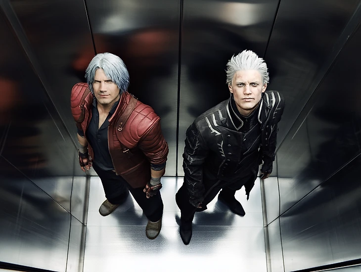 Subjects Integration: Seamlessly integrate the two people from the attached reference photos (maintaining their facial features, exact clothing, and intense/serious expressions). They should look naturally placed and lit within the metallic environment.