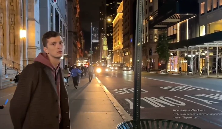 Повидавшись с местными "подписчиками" и пройдя все круги "криков", Алексей продолжил трансляцию по улицам Нью-Йорка, громко общаясь с чатом. Поделился историей о том, как много мусора в городе, из-за чего полно крыс. Именно в этот момент, среди сотен людей, конечно же, встретил человека, который его понял...