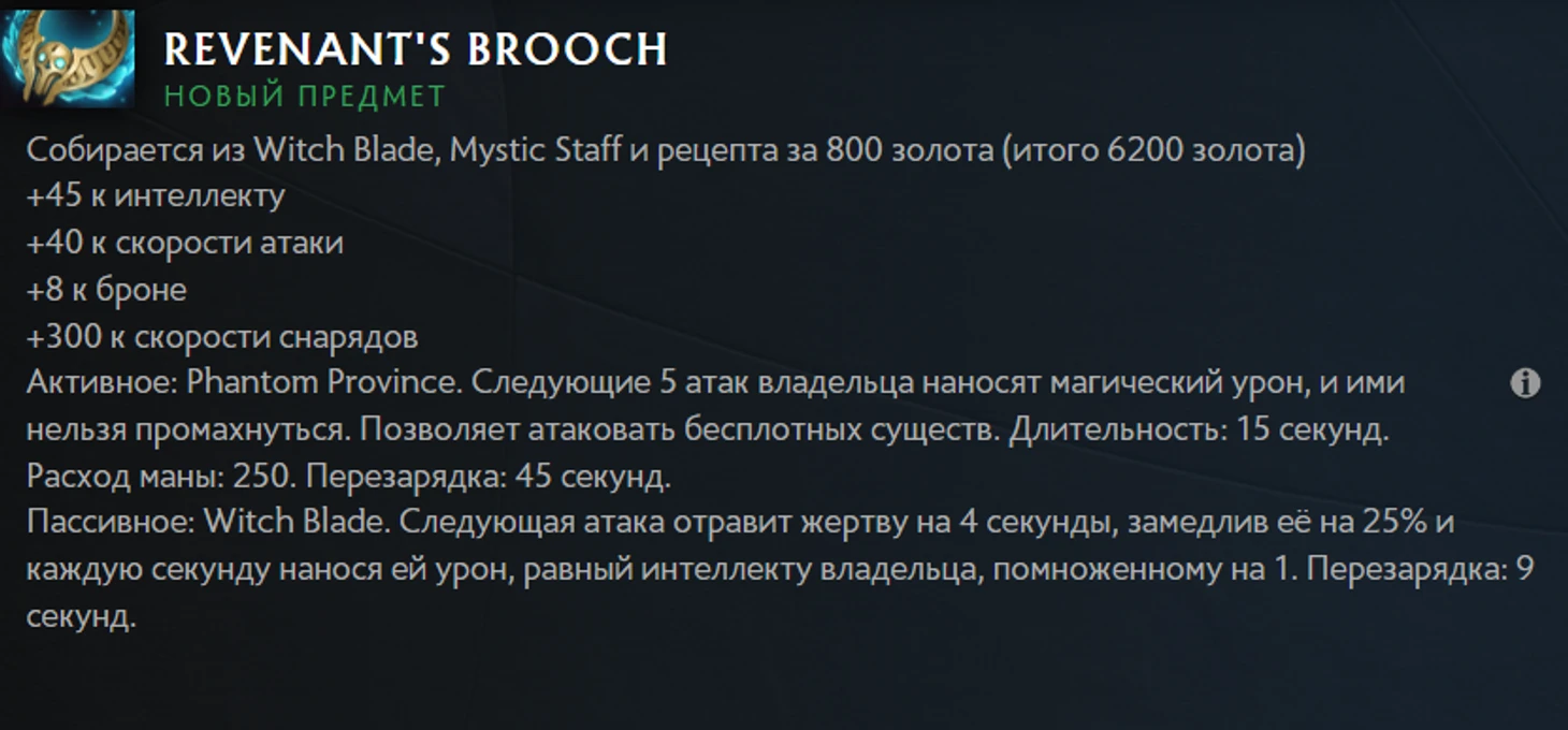 Когда-то давно этот предмет был на слуху — брошку постоянно брали и на интовиках, и на других DPS-героях, когда противник набрал себе слишком много брони. Сейчас же этот предмет будто лежит на самой нижней полке в супермаркете, как коробка соды или набор мусорных пакетов. Каждый раз, заходя за покупками, ты смотришь на тот прекрасный ассортимент, что лежит наверху. Потом ты бросаешь взгляд вниз, видишь ценник в 4900 за 70 урона и 20% вампиризма заклинаниями — и рука уже тянется взять бабочку или Нулифаер. Что же случилось и почему Revenant’s Brooch теперь — один из самых нелюбимых предметов в игре? Будем разбираться. Разобьем текст на несколько фрагментов, как в моем предыдущем посте, и приступим: