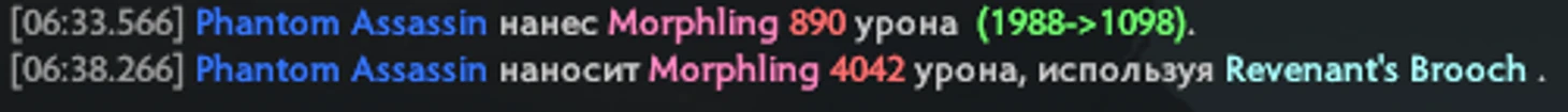 Разница между критами Phantom Assasin по Морфу с 64 брони с выключенной и включенной брошью налицо.