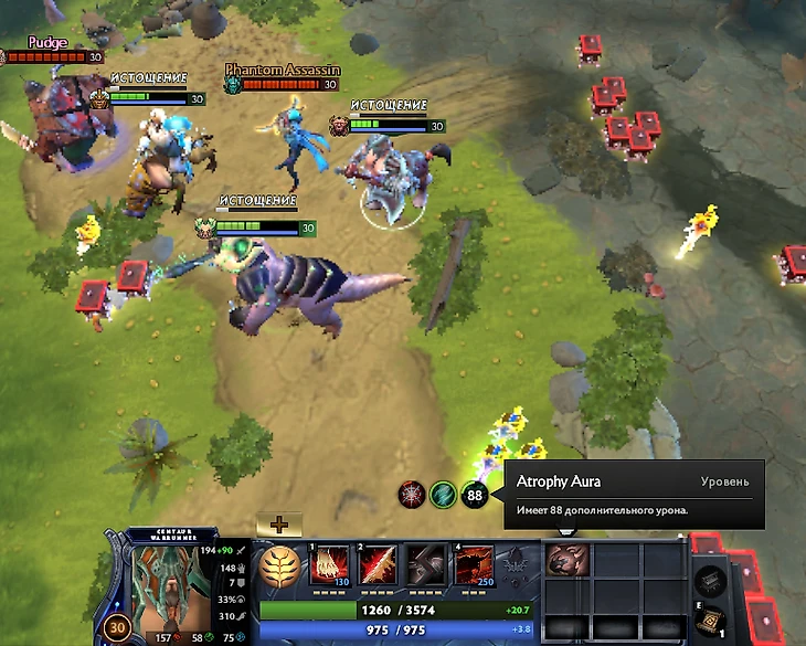 Отключается даже аура Кентавра с таланта – если отключить пассивки Кентавру, то противник перестанет получать в лицо процент от силы каждый удар.